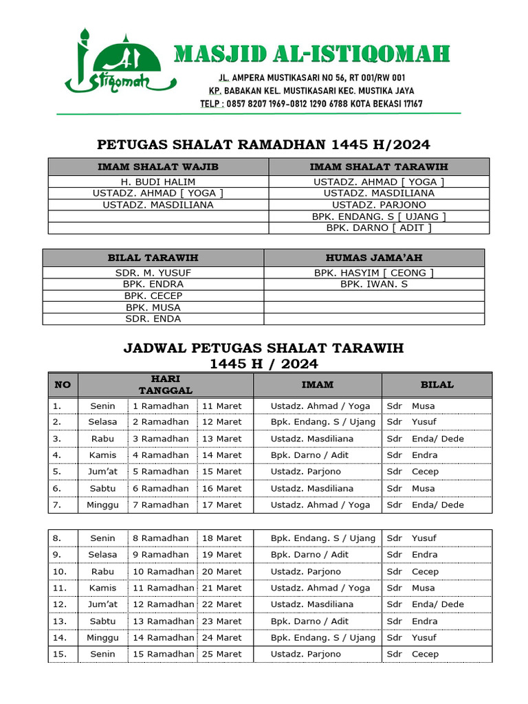 Experience also matters. We not only show which Jadwal Sholat Tarawih 2024 | PDF | Spiritual Practice | Fasting are available but also how to use them effectively.